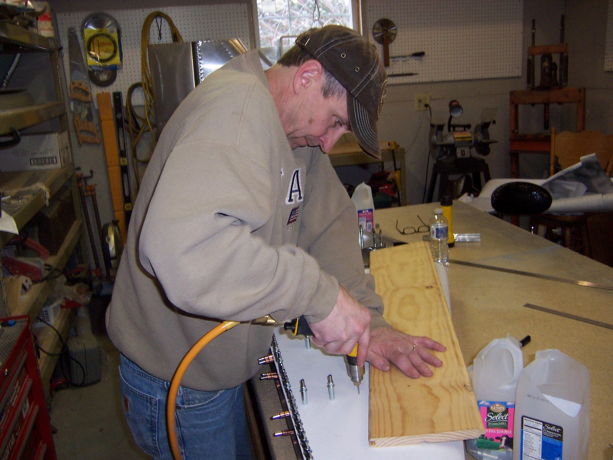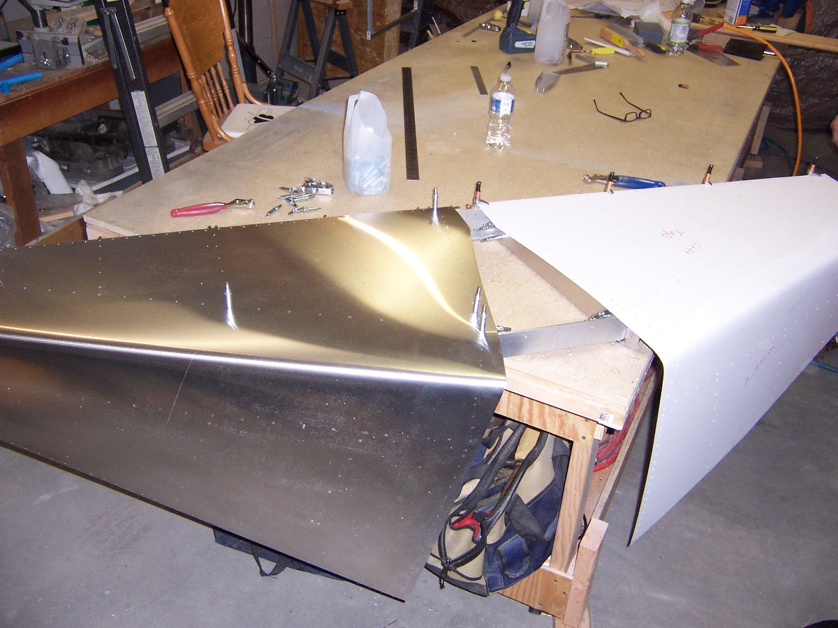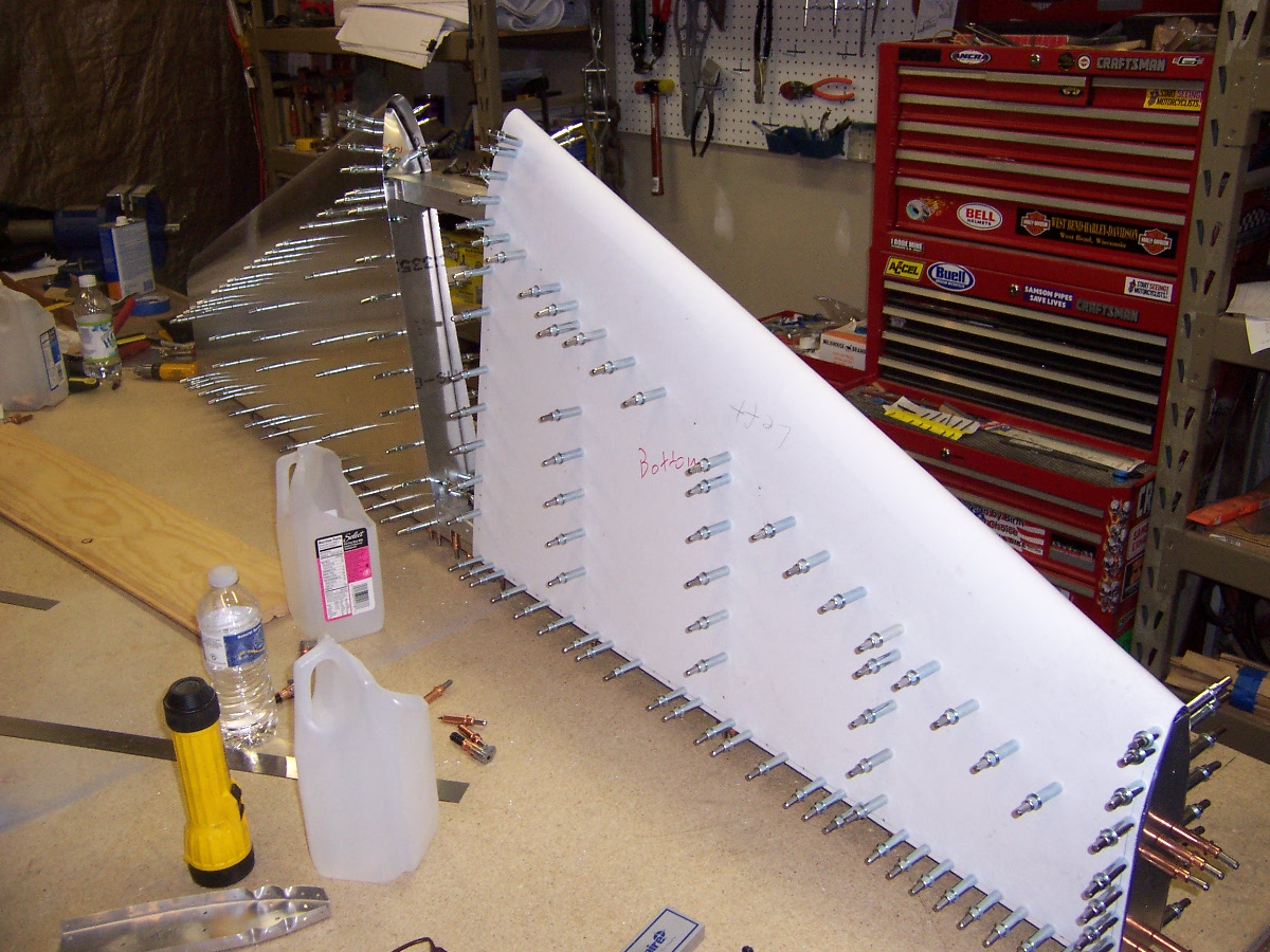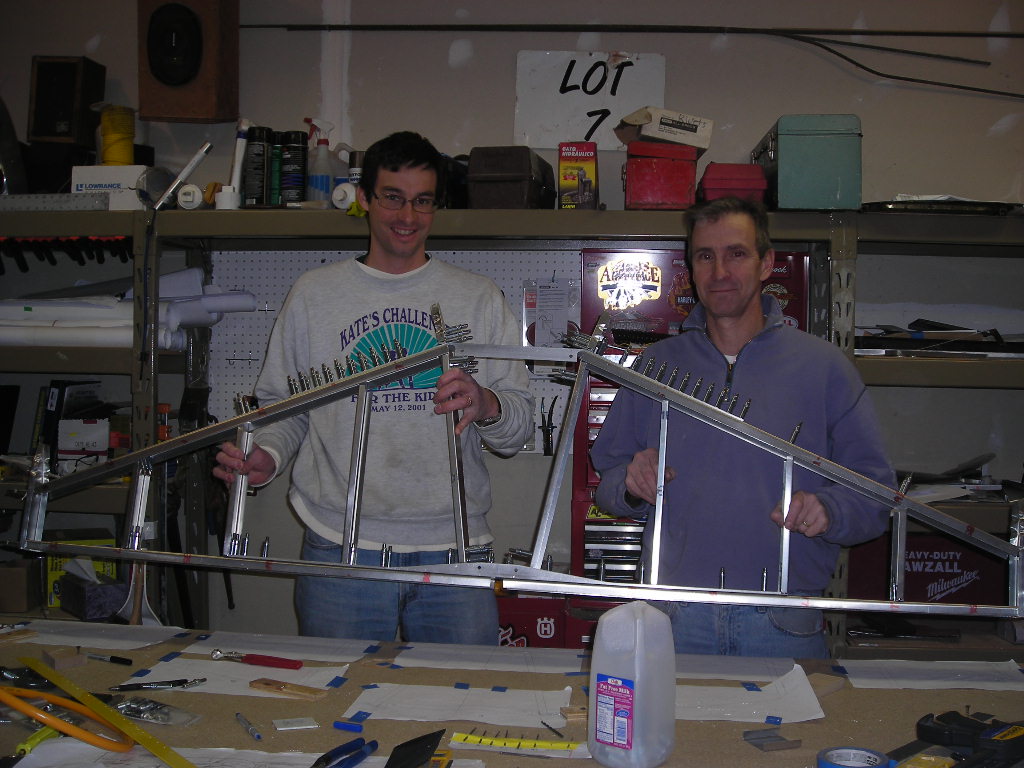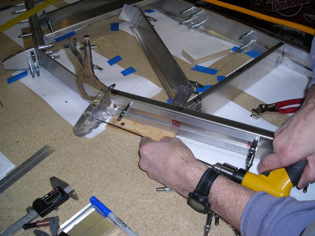 Dan finished riveting the frame together. He put the skins on with clecos: