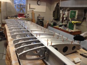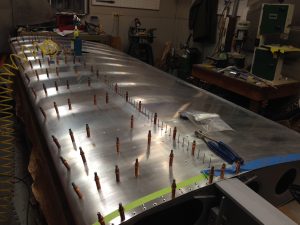 The plans do not mention it but I am planning on match drilling the seam at the top of the turtle deck with the two sections laid flat to insure the holes line up. It seems obvious as I write this but the plans show two halves being drilled as separate pieces and only later laid flat to be riveted with the seam channel. The two sections I am referring to are F20-06 (R and L) and the seam channel is F20-07.