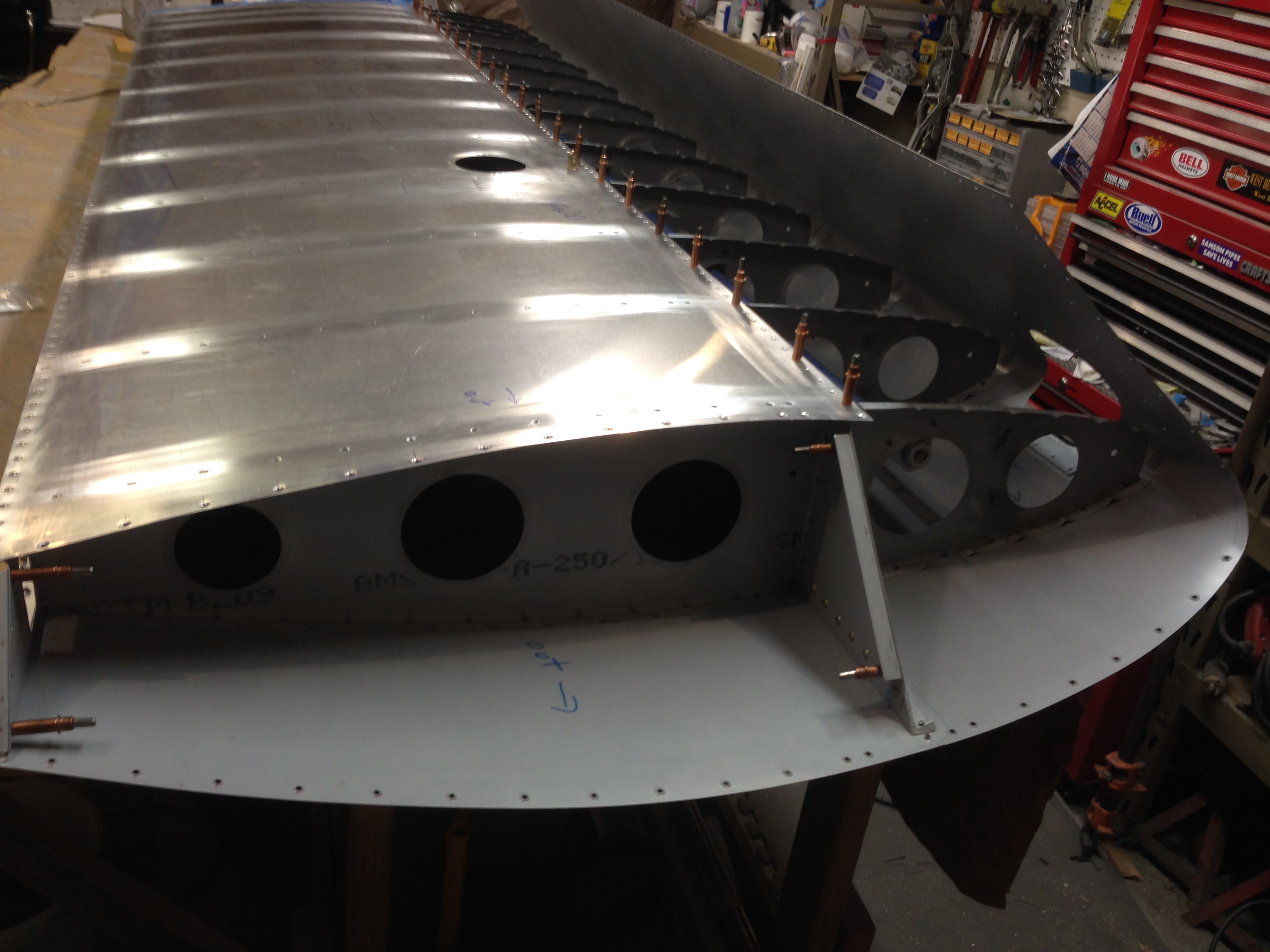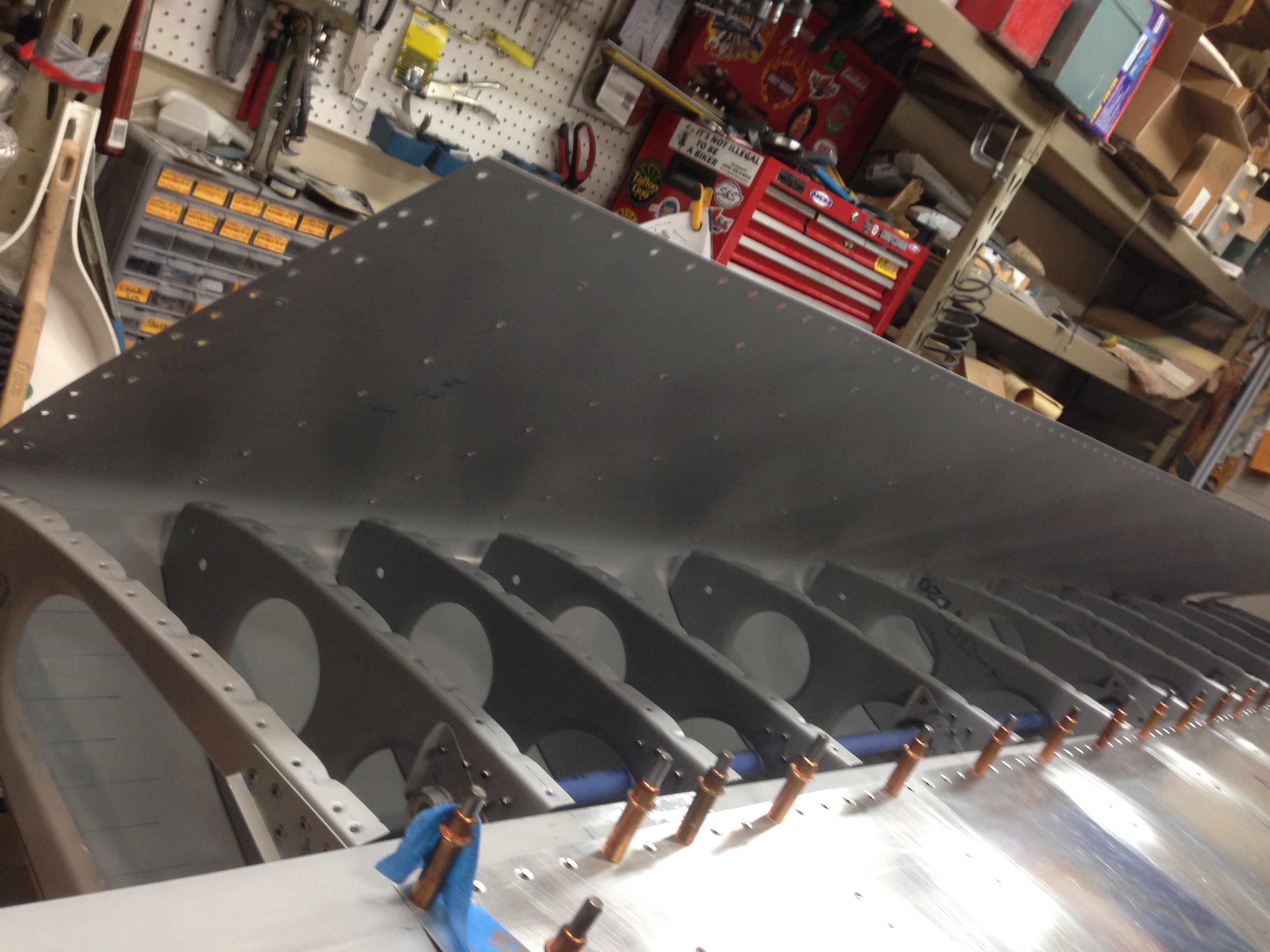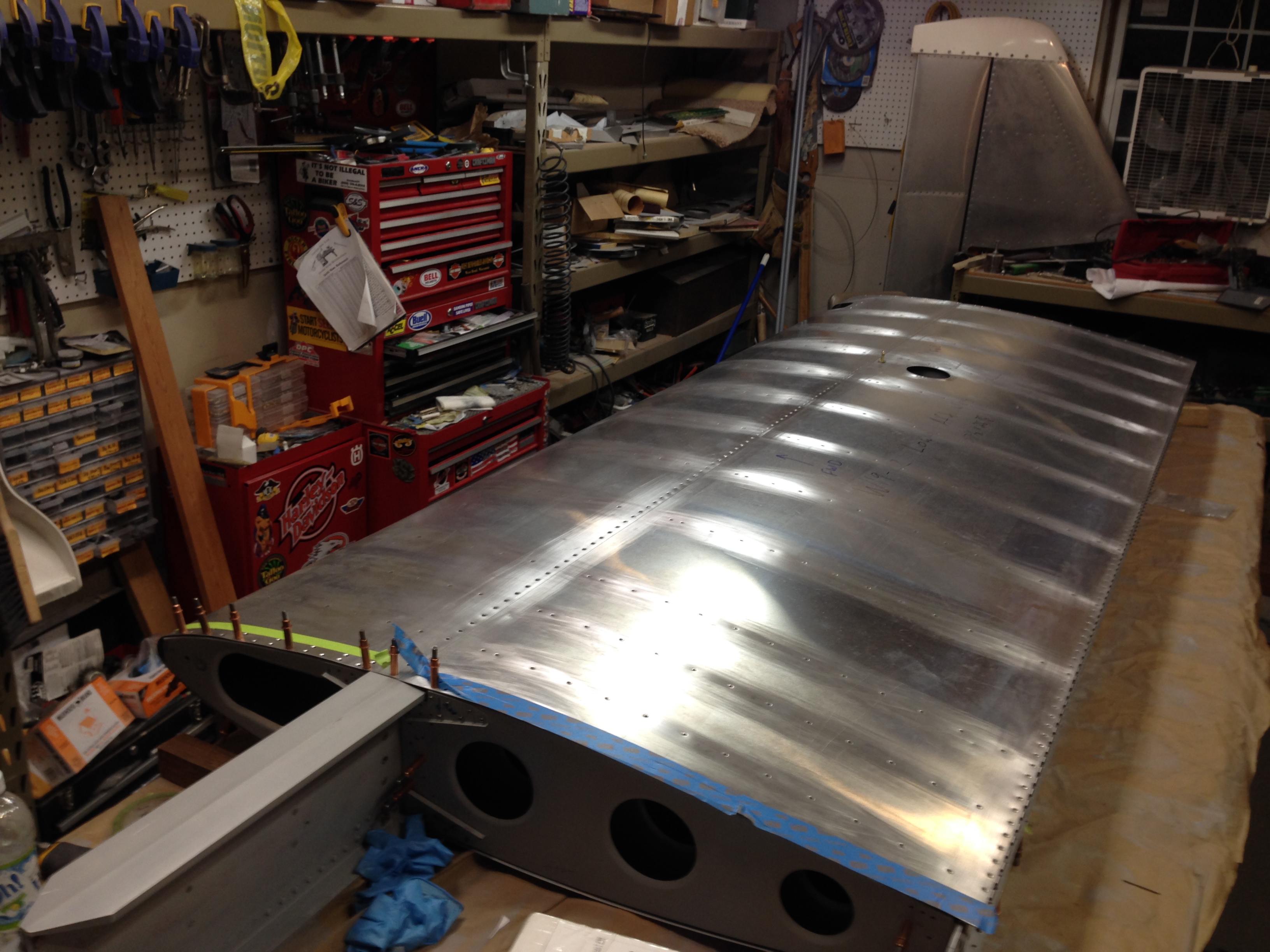 The plans do not mention it but I am planning on match drilling the seam at the top of the turtle deck with the two sections laid flat to insure the holes line up. It seems obvious as I write this but the plans show two halves being drilled as separate pieces and only later laid flat to be riveted with the seam channel. The two sections I am referring to are F20-06 (R and L) and the seam channel is F20-07.